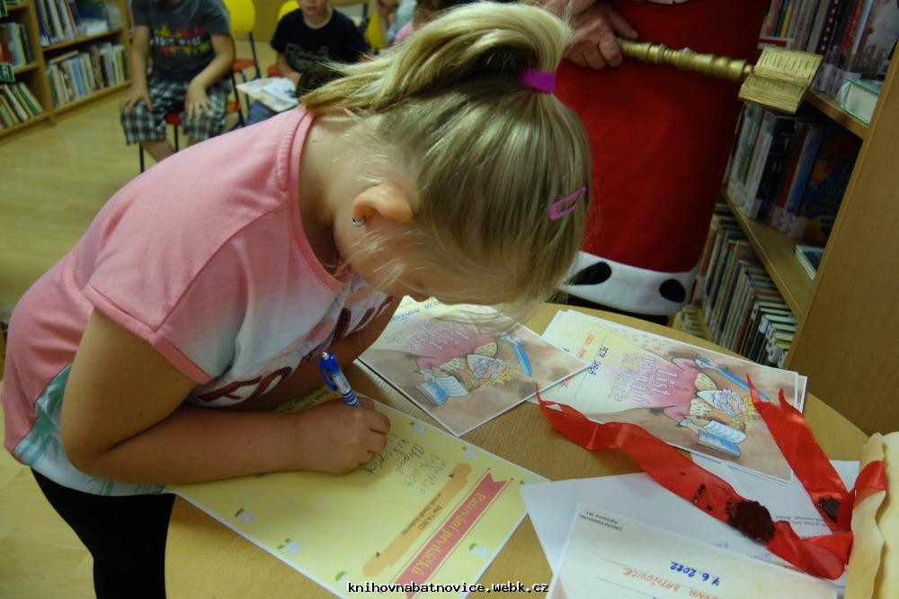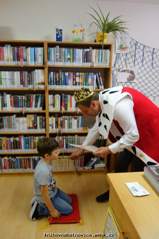 Král Abecedník I. a Písmenková víla se přesvědčili, že žáci z 1.třídy umí všechna písmenka, a že se naučili číst. Pan král mohl všechny pasovat na čtenáře knihovny.
