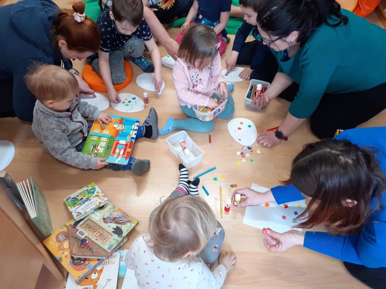 Na dnešním setkání maminek a dětí jsme si společně četli pohádku "Kde je moje kuřátko?" Hledali jsme zatoulané kuřátko, které maminka kvočna nemohla najít, ale děti hned věděly, kam se kuřátko zatoulalo. Jedno malé kuřátko si každý vyrobil.