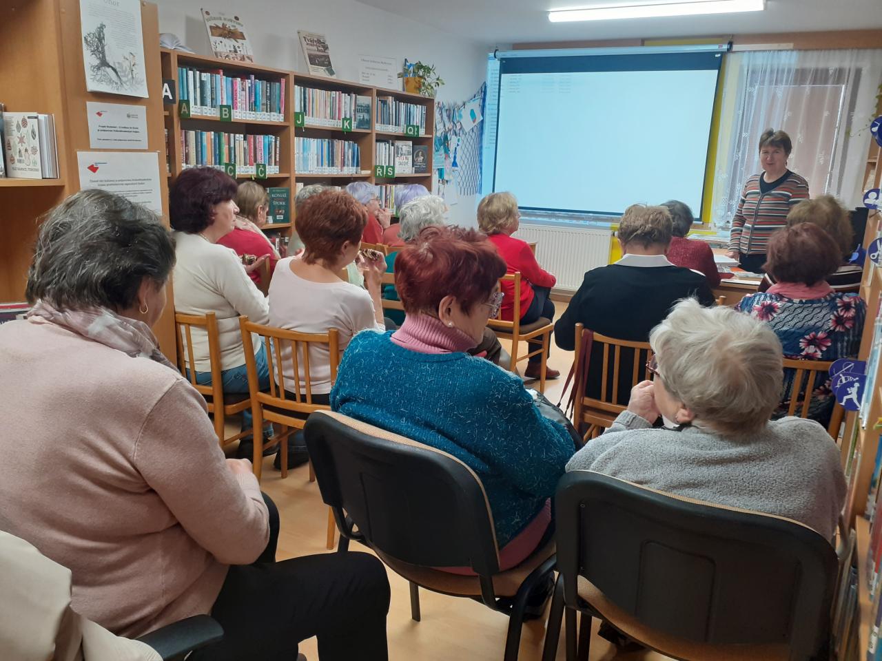 Klub seniorek zavítal do knihovny. Zde si seniorky promítly fotografie ze společných výletů a zavzpomínaly na zážitky z cest.
